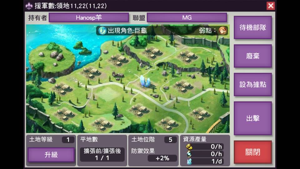 1. 领土难度归类于5,看板上大家是说约战斗力5万上下就打的赢了