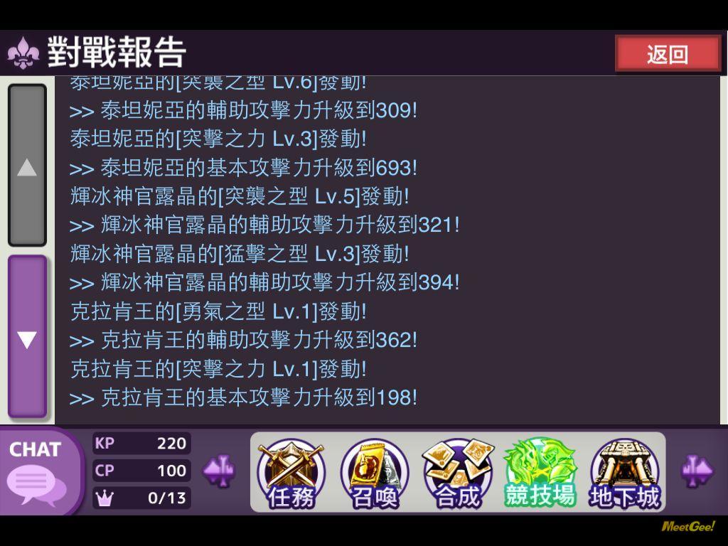 ▲初期KP 有限,先专注强化三张卡才能快速提升战斗力。
