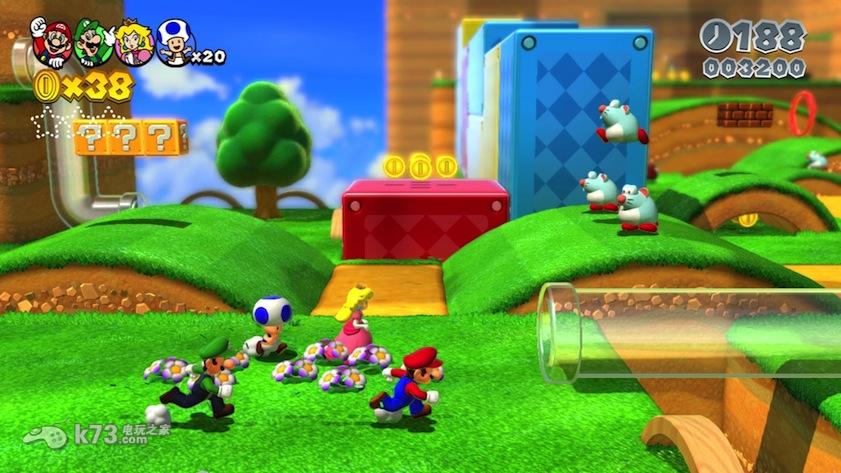 拉着你的朋友,一起到WiiU《超级马里奥3d世界》里进行冒险吧!你可以选择碧奇公主、马里奥、路易、耀西进行并且每个角色都有独特的能力。