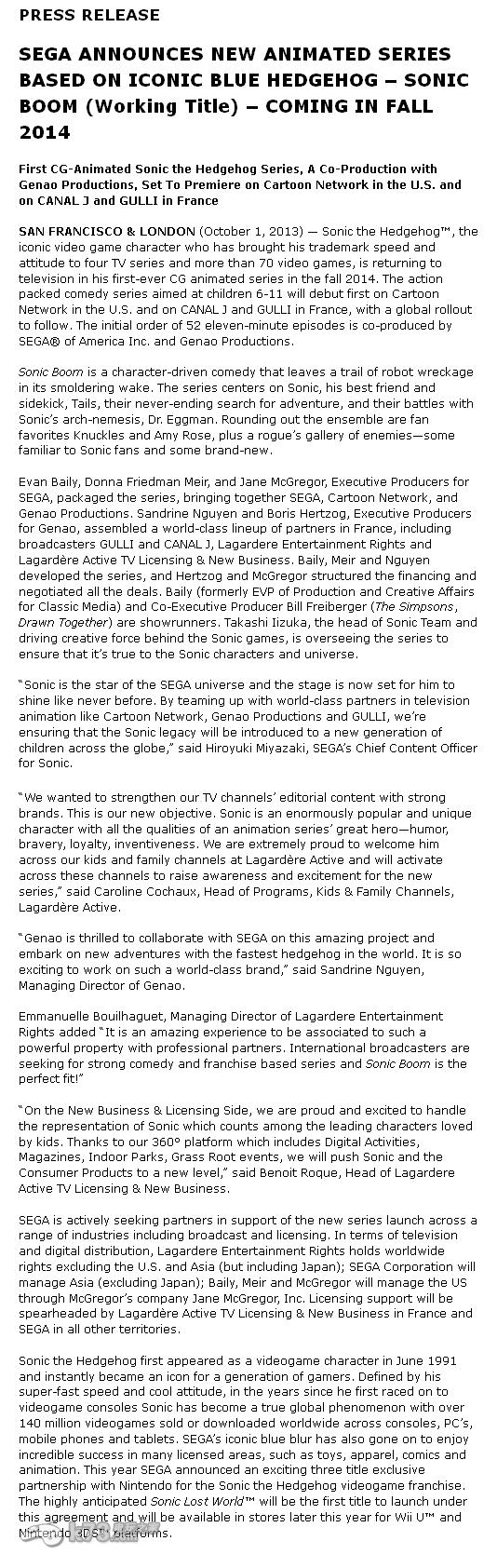 索尼克动画《Sonic Boom》2014年秋季放映