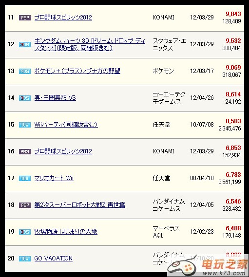| 12 | 3DS | 王国之心3D | SE | 12/03/29 | 9,532 | 308,484 |