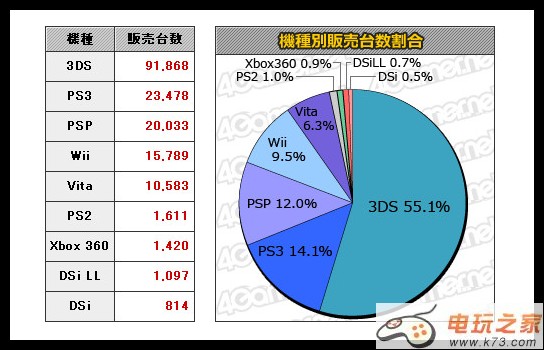 本周3DS销量相比上周销量有近1.5万的增长,在这两周并没有什么大作的情况下仍然有这个销量,可谓相当不错,希望3DS继续保持。PS3销量没有多少变化,本周销量为23478套,而PSP的销量也变化不大以20033的销量排名第三。本周PSV的销量相比上周又有了轻度的下降,本周售出了10583套。