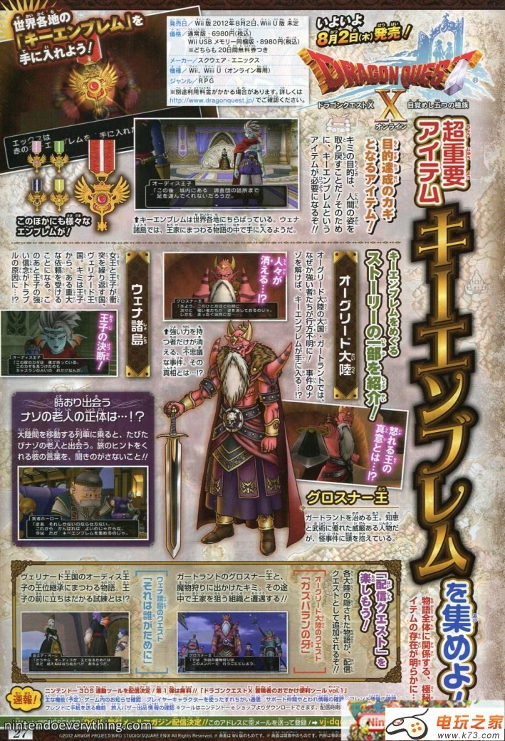 日前,se在最新的fami通杂志图上放出了其预定于8月初登录WII平台的勇者斗恶龙新作《勇者斗恶龙10 觉醒的五种族》的最新杂志图,本次介绍了游戏剧情中的重要道具的相关情报,玩家需要对其进行收集,推进剧情发展。