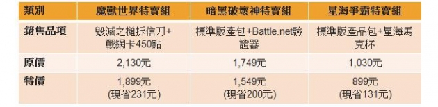 展场期间(8 月 2 日起至 8 月 6 日止),摊位销售区推出《魔兽世界》、《星海争霸 2》和《暗黑破坏神 3》精选周边商品 9 折起(特定商品除外)的优惠,另有三款游戏限量优惠特卖组,以及从美国限量进口 T 恤,现场周边商品满 888 元起,以统一发票为凭,可於销售区服务台兑换赠品,数量有限送完即止。