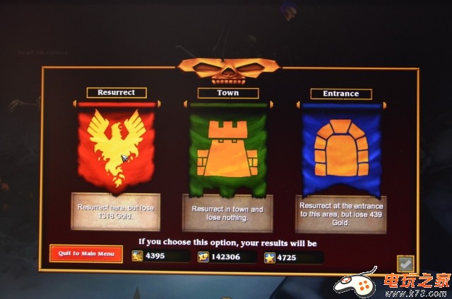 玩家在死亡後,可以选择以下三种方式进行复活的动作,这点与一代相当类似,只有回到城镇复活不会有任何惩罚,其余像是在原地复活,或是在地城入口处复活都需要花费一定的金钱。