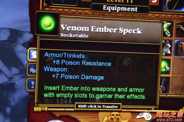 初期获得的宝石,可加成装备的毒素攻击或抗性
