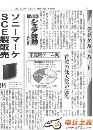 2012年任天堂将通过WiiU的发售以及已经发售的大画面的3DSLL来抢占市场。而SCE则计划加强PS3的服务项目以及PSV的投入力度。