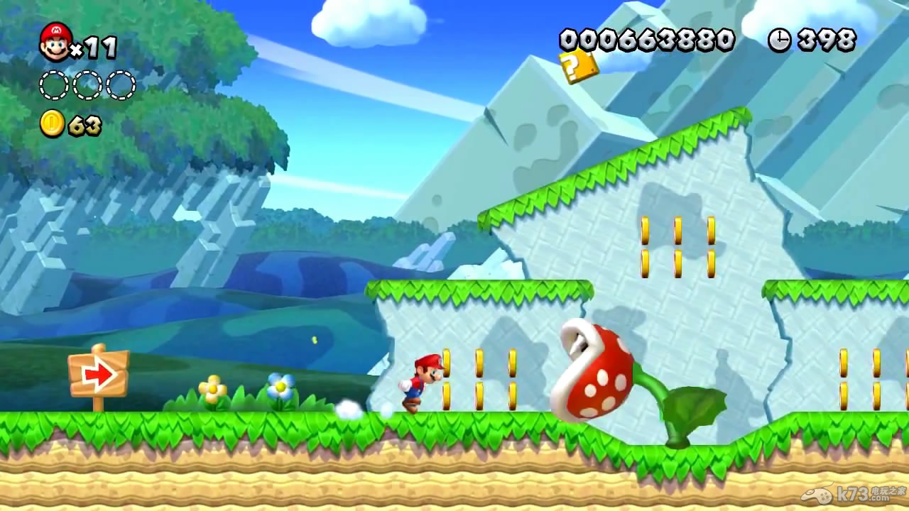 今天,任天堂官方公布了一段WIIU首发游戏《新超级马里奥兄弟U》的部分开头动画及实机演示视频。本作的画面非常的流畅,玩家除了要像以往的作品那样控制马里奥以外,还需要利用WIIU的GamePad手柄要作为收集金币等操作。本作的日版预定于12月8日发售,美版为11