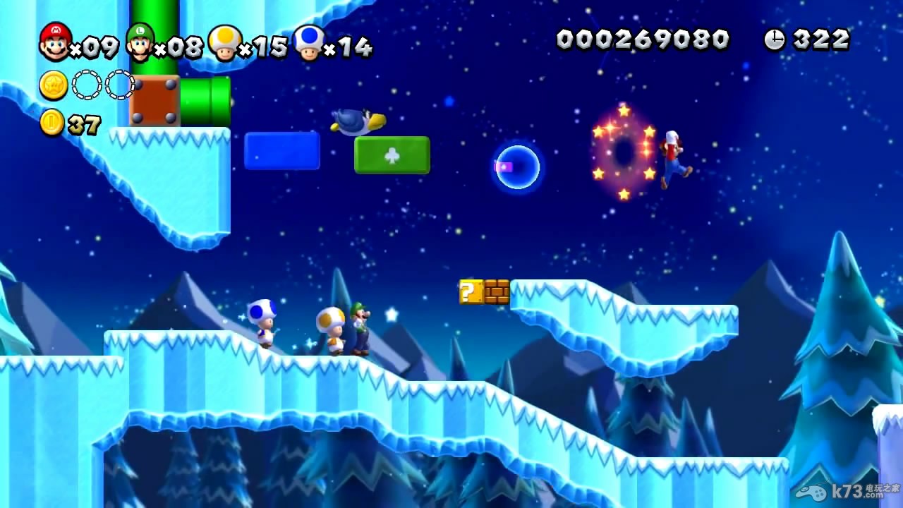 今天,任天堂官方公布了一段WIIU首发游戏《新超级马里奥兄弟U》的部分开头动画及实机演示视频。本作的画面非常的流畅,玩家除了要像以往的作品那样控制马里奥以外,还需要利用WIIU的GamePad手柄要作为收集金币等操作。本作的日版预定于12月8日发售,美版为11月18日,喜欢的童鞋要赶紧存钱啦!