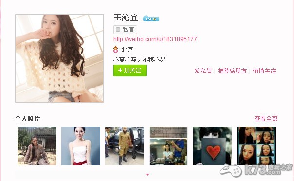 近日网络上疯传的著名武打明星洪金宝与内地新星王沁宜之间的四天三夜的忘掉情引起了外界的一致关注,而王沁宜这位新星也引起了多方的关注,下面就给大家分享下她的新浪微博地址及一些个人小资料吧!