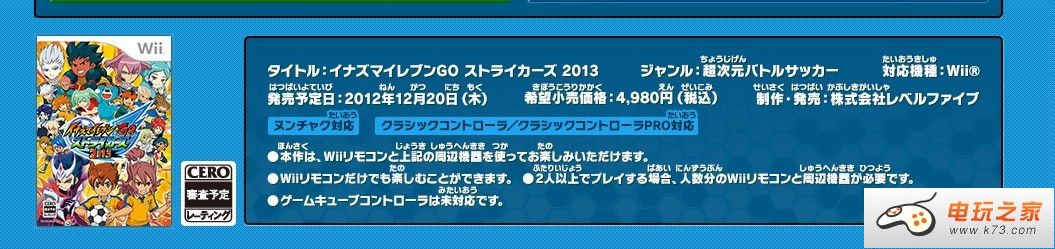 Wii《闪电十一人GO:强袭者2013》于12月20日发售,售价 :4980日元