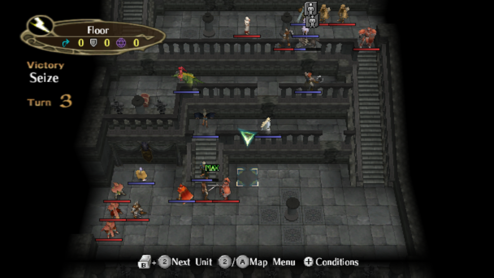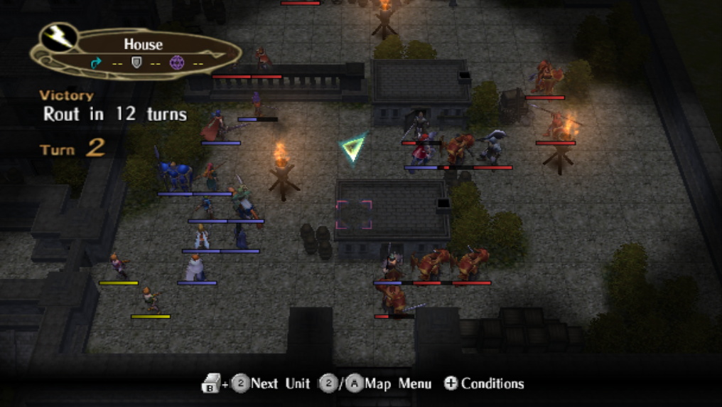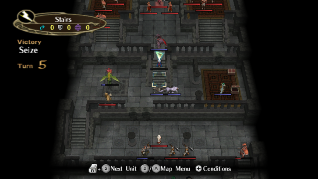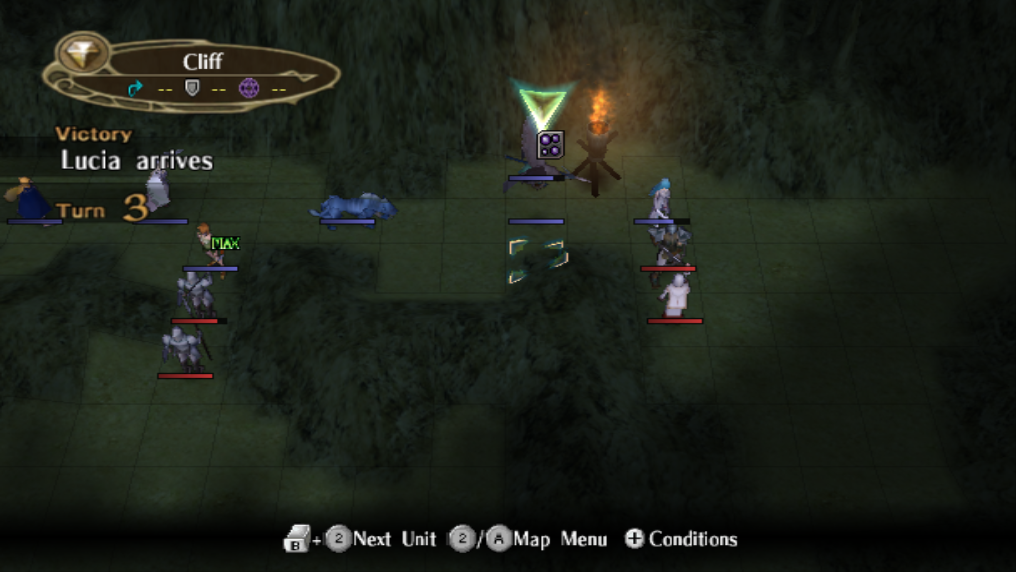 这关也是变数较大的一关,两个弓兵从左边的火力支援是关键。两个骑兵要抢在兽兵之前扫掉右上方的boss和其他人,不然会多拖回合。如果兽兵由玩家操纵的话估计可以5回合结束,依赖AI的话基本没什么可能……
