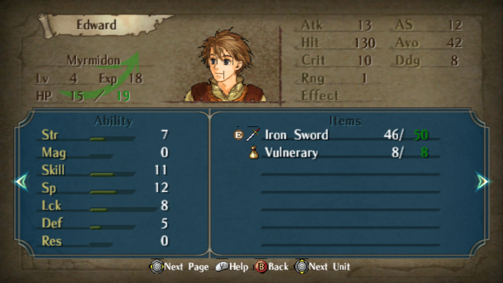 第四回合结束时的情况。敌方回合时boss会把艾迪砍进愤怒血值并吃一记必杀。美版的愤怒有强化,30%血以下100%触发,加50必杀,把握得好的话前期是不错的输出技。
