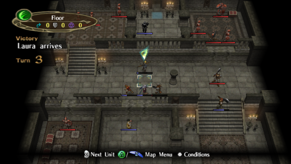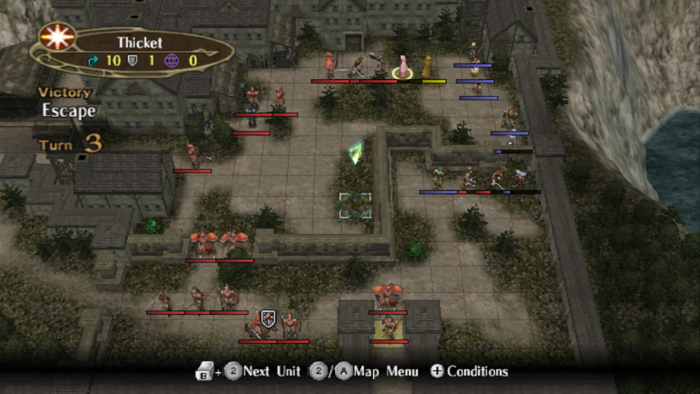第三回合开始时情况。米大妈存活要RP,还好有个A支援。斧叔和大胃继续下移,其他人留在上路。撒扎攻击重甲,敌方回合杀死。