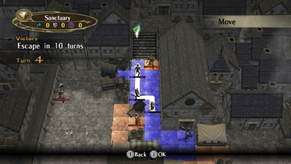 很基本的4回合,投斧一定要拿到并交给大叔。这关的行动随人物血量不同可以随机调整,一下只是其中一种站法。