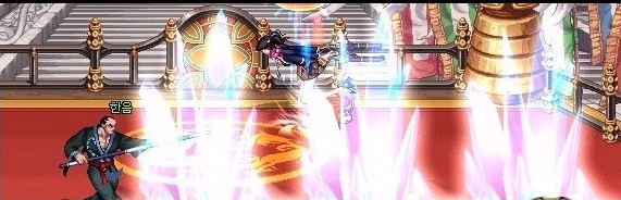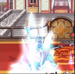 第二个技能是向前发射3股枪攻波,与暗夜使者的技能差不多,站立,身后出现3道巨大的气功波,X轴射出如下图