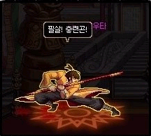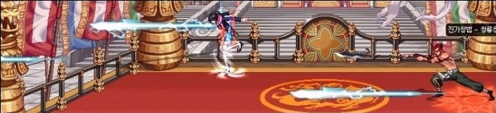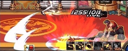 第三个技能是砸地剑气波,向前发出广范围3股剑功波,又见剑魂的幻影剑舞的收招,如下图