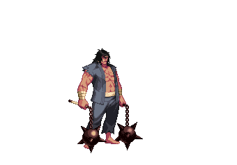 是用轮链锤来攻击,一般都是直线只要注意他普通攻击不要被击晕就好如下图