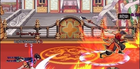 第一个技能技能是火幻影剑舞的最后的波段,跳起来发动,落下的时候有剑气波放出如下图