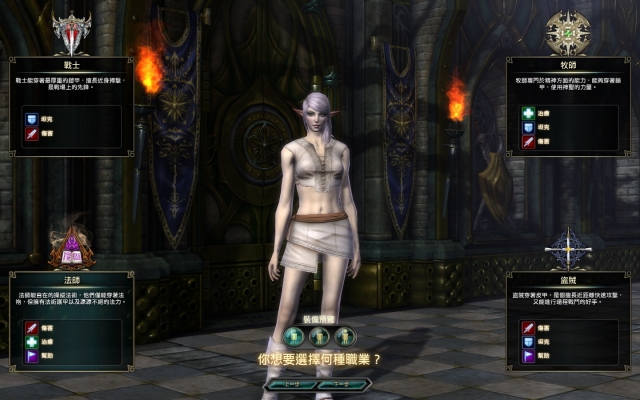 再来是选职业,游戏有四大主职业战士、法师、盗贼、牧师,选完职业之后,系统将会依照职业的不同提供各自初步灵魂天赋的建议,分别是攻击型、均衡型、防守型、辅助型。