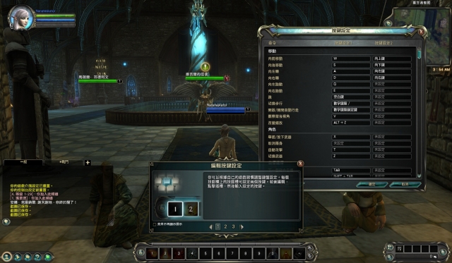 首先一正式进入游戏,系统就会告知操作方式,W 与 S 是前进、后退,Q 和 E 是水平左右移动,A 和 D 是旋转人物方向,如果玩家对预设设定不习惯,可以在设定选单中自行调整所有热键,改成自己顺手的配置。