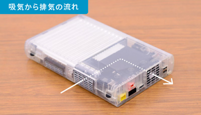 WiiU开发之初就以不显眼的“黑子(※)”为主题来设计,所以最初就以极小化的筐体为设计目标。不过WiiU的核心晶片耗电量是Wii的3倍,为了克服散热问题,因此采用尺寸更大、鳍片更密的散热片,尺寸更大、转速更高的散热风扇,以及经过最佳化的L型气流通道设计,连风扇排气孔的保护盖也设计得更薄、格子内侧设置斜面让空气更容易排出等,另外还加上有密集气孔的散热片金属罩来减少外泄的电磁波。前後进行超过2000次、每次1小时的散热实验来确认成效。