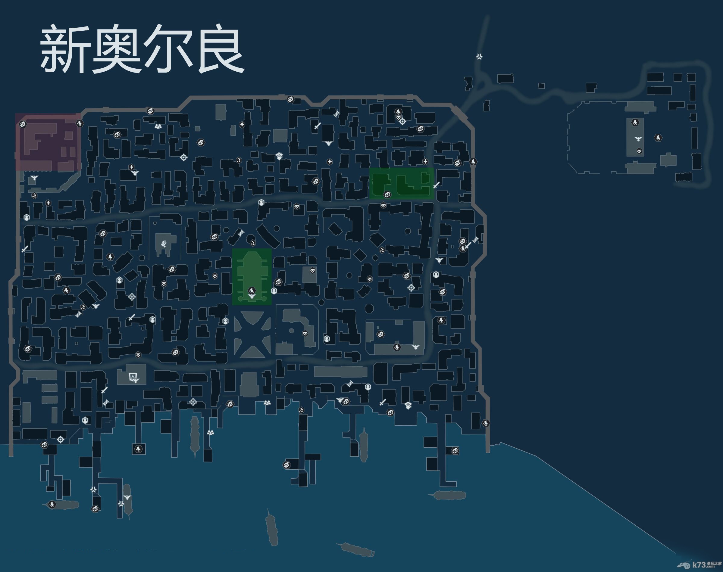 《刺客信条3 解放》中不停繁琐的进行地图的切换相信很多玩家觉得相当的讨厌吧!为了方便各位同学进行游戏,下面就给大家带来本作的城镇的地图全貌,并且还标明了一些重要的区域。