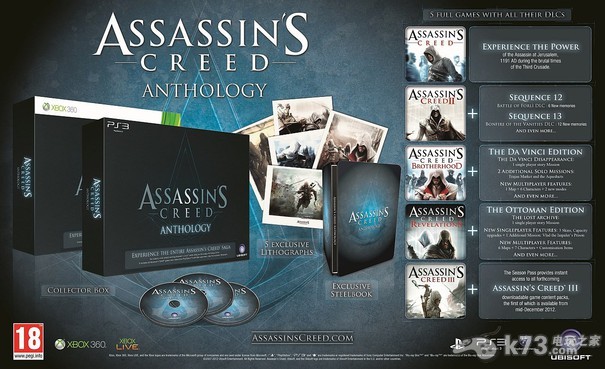 伴随着近日育碧旗下超级大作《刺客信条3》的发售与热卖,育碧官方乘胜追击,再次推出了一个刺客信条系列的合集包。本次的合集包资源相当的丰富,包括了《刺客信条1》、《刺客信条2》、《刺客信条3》、《刺客信条启示录》以及《刺客信条兄弟会》等多款游戏,喜