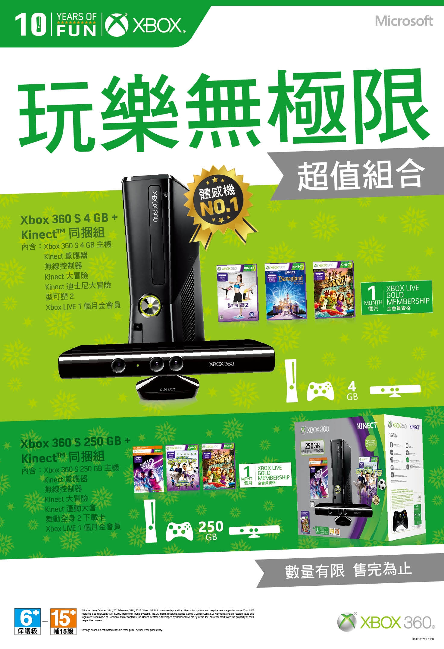 迎接2012年岁末,Xbox 360推出多款热门游戏更新及优惠组合,与玩家同庆年底欢乐假期,包含光环4上市首日即创下全球63.8亿台币销售额佳绩,上市一周更将突破一百亿台币,共有400万玩家在上市内五日投入游戏,创下3,140万小时纪录,上市后仍每週推出新剧情任务的超级战士任务更新,让玩家战斗不间断;而红遍全球、创下Youtube七亿人次点阅的Gangnam Style,将自11月28日起登上热销的体感舞蹈游戏舞动全身3(Dance Central 3),全球舞迷将可下载,并在家中客厅大跳骑马舞;喜爱赛车游戏极限竞速:地平线(Forza Horizon)的玩家则可透过持续推出的新车款套件享受不同的飙速乐趣;上述游戏及囊括健身、塑身、瘦身最新训练课程的Nike+ Kinect健身教练(Nike+ Kinect Training)串连Nike+和Xbox Live两大全球社群,让玩家随时和线上好友一同接受健身挑战。现在入手Xbox 360享有这些最新娱乐内容正是时候,多款超值主机组合优惠现正热卖中。