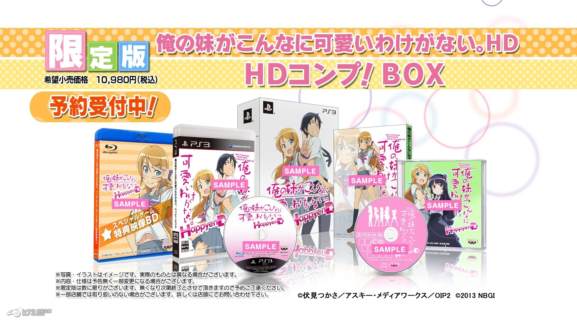 Dengeki官方于今天公开了其将于ps3平台发售的AVG游戏《我的妹妹不可能那么可爱 快乐结局/俺妹Happy End》的限定版的全新情报,这款将于9月26日发售的动漫改编作品此次的限定版将会拥有哪些豪华内容呢!