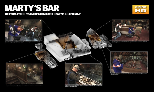 Roscoe Street Subway 地图将带玩家回味《马克思佩恩》初代的地铁浴血激战。Marty's Bar 地图则让玩家重新忆起骯脏的 Hoboken 酒吧。玩家还可在 Shoot First 地图中于豪华的 Branco 家族游艇上驳火,并能在 Canal De Panamá 地图上展开帮派战争。「痛苦回忆包」也收录了 IMG 5.56 和 UAR-21 突击步枪、新虚拟角色、物品和能让敌人重生时视线模煳、耐力和生命大打折扣的「宿醉特殊能力(Hangover Burst)」,欲知更多痛苦回忆包相关细节请亲至官方网站查询。