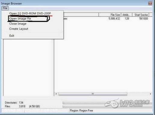 3.选择File中的Open image file,然后选择需要转换的iso文件: