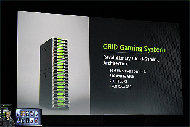 云技术是近年来网络界讨论的热点,近日CES2013上,云游戏服务器:Nvidia GRID公开了运行速度数据,每秒有 200 兆次浮点运算,相当于 700 台 Xbox 360。
