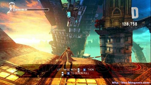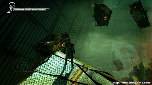 6.进入镜像,掌握技能——恶魔锁链(把敌人或红色闪光拉到自己身边RT+X)沿途不断跳跃熟悉技。破坏锁链后离开镜像。