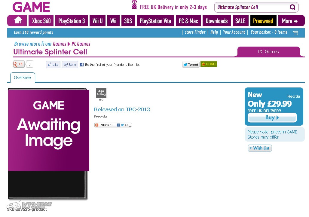 来自英国购物网站GAME的消息,其于近日放出了一个专门的预计的页面,在预定名单中我们看到了《细胞分裂6 终极版》和《孤岛惊魂3 终极版》的名单,这是否暗示着这两款游戏将会发行终极版本呢?
