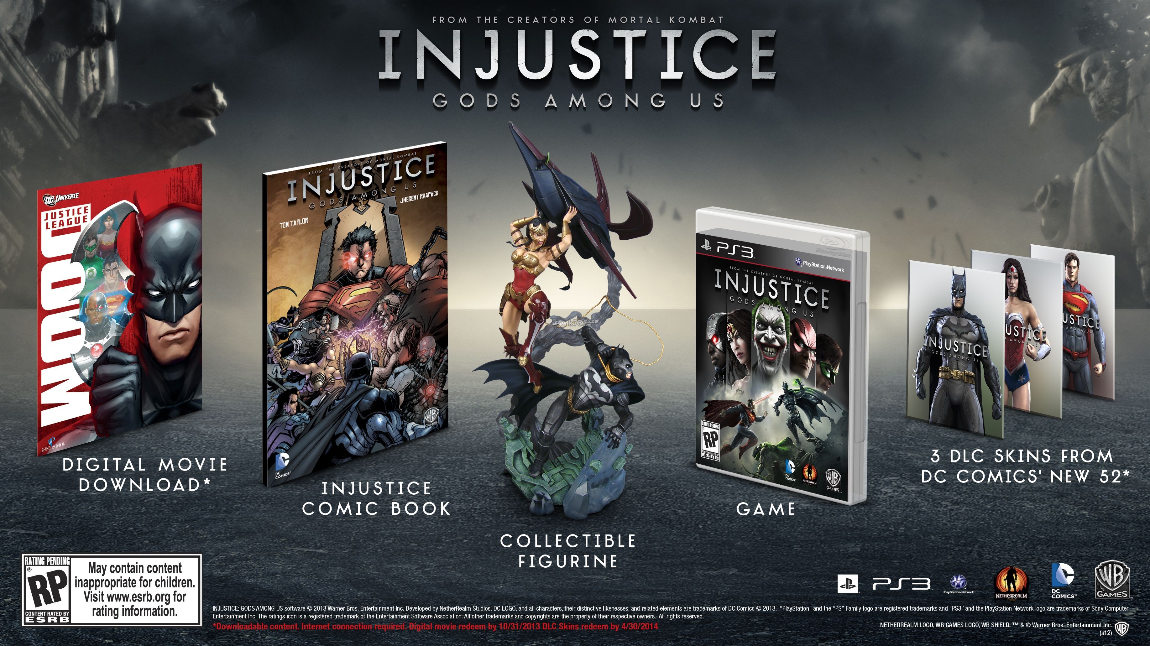 Netherrealm Studios于今日公开了其将于本世代家用机高清平台上发售的格斗大作《DC超级英雄快打/Injustice: Gods Among Us》的美版和欧版的游戏详细发售日期,另外,游戏的北美版和欧版的珍藏版和战斗版售价也得到了判明。