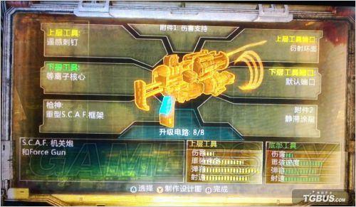 支架式大型支架,上枪身遥感钉刺第4章支线任务 格利佛号 就可以拿到,枪口衍射环面是最后一个,要50个钨就能做。