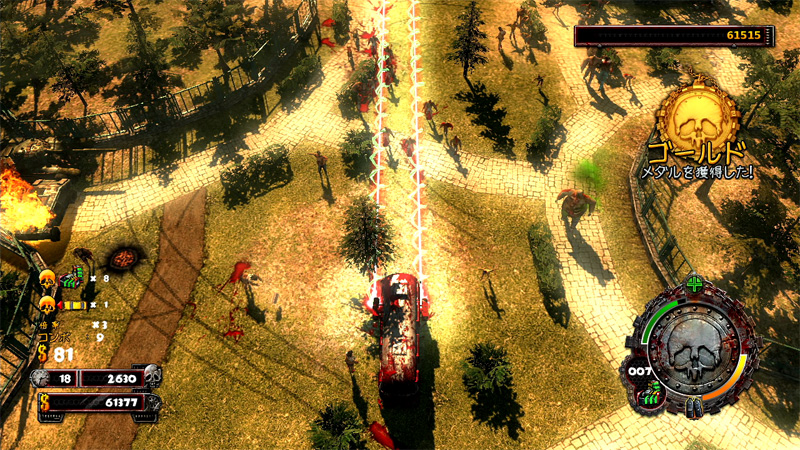 本作为官方于2012年10月17日起在Xbox 360主机上推出的同名作品最新PS3移植版本,也是一款以僵尸佔领的都市作为舞台的飞车动作游戏,玩家们在游戏中必须驾驶搭载火焰发射器或是火箭砲等各种武装的车辆来打倒僵尸,并拯救倖存者们逃出生天。而随着任务不断过关,玩家们将可以不断取得各式各样新的车辆与武器入手,并针对车辆来进行改装强化。附带一提,在本作中当玩家们连续打倒一定数量或一定种类的僵尸之后,将可以产生Combo连击,让得分奖励的倍数产生改变,因此玩家们可以利用这点来挑战高分,藉此来测试自己的实力!除此之外,玩家们还可以利用过关奖励来针对自己的车辆进行装备改装,并藉此提升车子的装甲(装甲)/突破力/速度三种数值,此外也可以购买新的武器装备,或是变更车辆种类,或是针对车体颜色进行更换,享受自订车辆的改装乐趣。