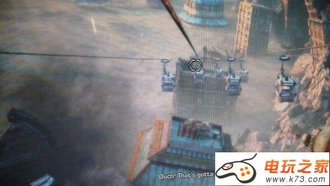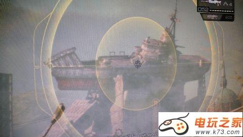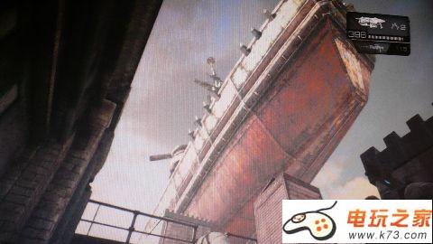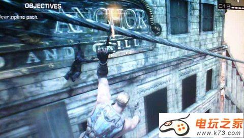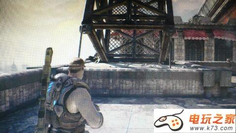 ② 来到楼顶,大船就在不远的前方。与一干敌人交火之后,找到一座摇摇欲坠的铁塔,射击打断缆绳是铁塔倒下,形成一座通向旅馆的大桥,对面的屋顶仍是一堆敌人。
