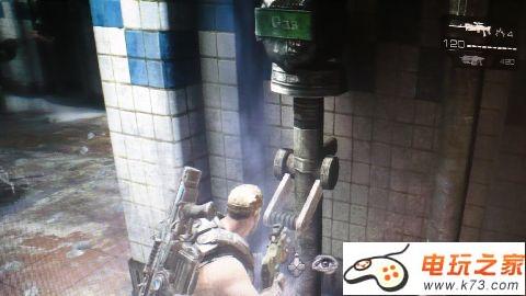 ② 进入荧光人冲出的房间,Paduk开启铁栅栏,继续前进。现在的当务之急就是赶紧找到上屋顶的路,离开这危险的地方。闪烁的灯光,昏暗的房间,不断袭来荧光丧尸,巴德吐槽这就像是一部恐怖电影。