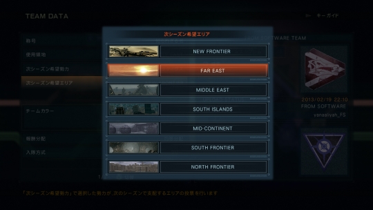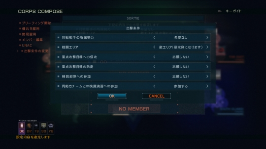 在本作,编列部队时可以设定出击的任务。在这裡设定希望对战的对手所属势力、战斗领土、各种作战等等,就能和符合条件的敌方战斗。
