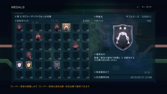 本作除了奖盃和实绩,还有个人勋章。击破数和出击等等种类,有着各式各样的勋章,获得所有的勋章,以最强佣兵为目标吧!