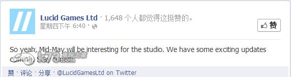 来自国外游戏工作室Lucid Games的消息,其日前在官方推特上发表推文称,公司预计在本月中旬公开一条“令人兴奋的更新”!之前有消息称这款作品将会是一款全新的赛车游戏。