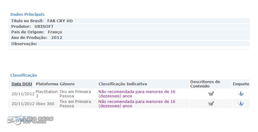 来自巴西portal.mj.gov.br网站的消息,其于日前上架了一个名为《孤岛惊魂HD》的网页,游戏登陆平台显示为PS3及Xbox360。