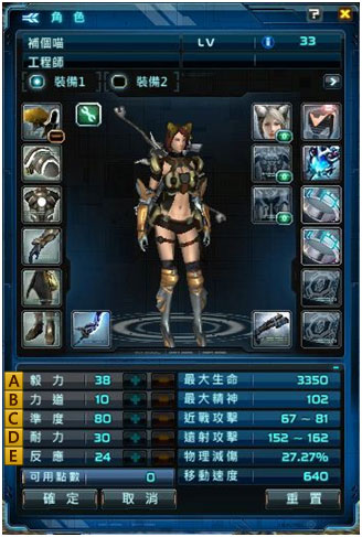 | E | 反应 | 提升爆击率、回避加成、格档率、命中加成 |
