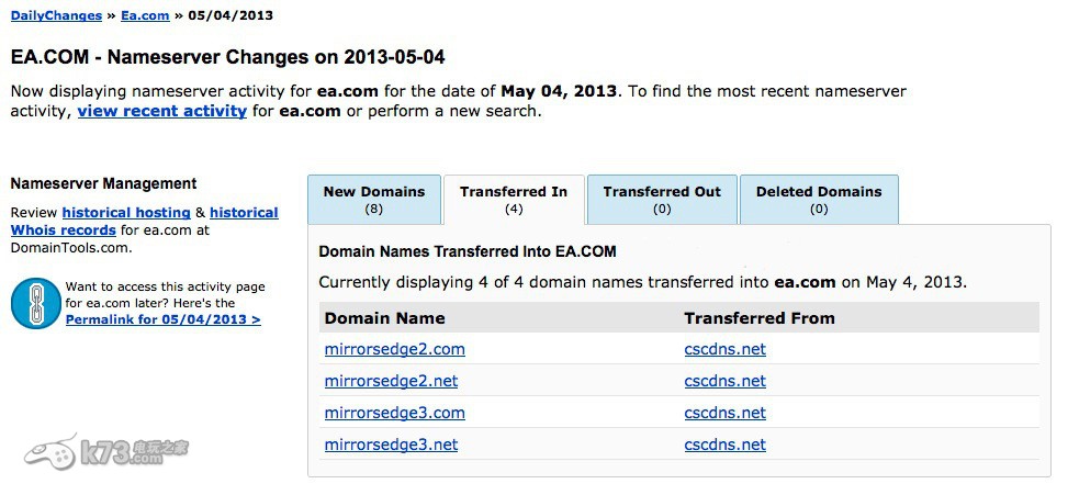 EA于2013年5月4日再次获得了《镜之边缘2》的游戏域名,旗下相关联的域名包括mirrorsedge2.com、mirrorsedge3.com、mirrorsedge2.net、mirrorsedge3.net。
