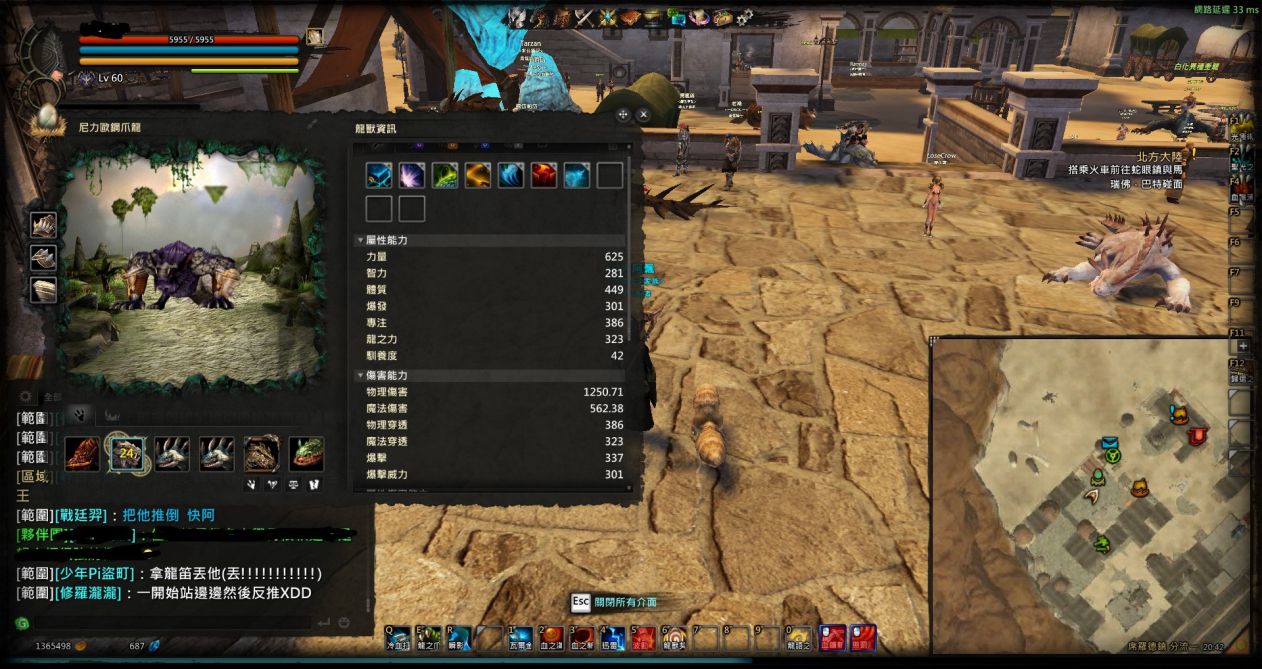 依照以上步骤花点时间培育及训练,相信不会有很软的龙兽...但是如果是想要把龙兽拿去打5人副本的王或拖一堆小怪...那就当我没说过萝!!!!!!!以下补一下各人的龙兽打60击怪物的打击及扫击的伤害照片~~
