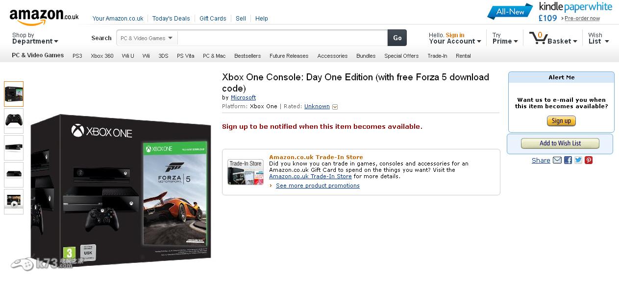 日前,英国亚马逊和shopto.net官方公开了一个Xbox One主机的首发限定版主机,这个限定版主机还会包含《极限竞速5》的游戏本体,同时官网上还更新确认了Xbox One主机的具体上市日期!