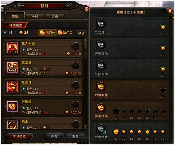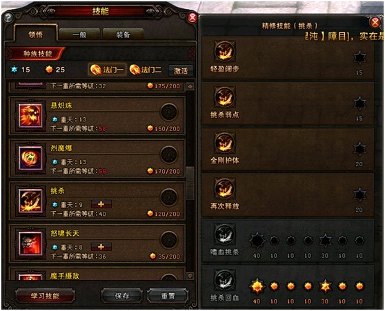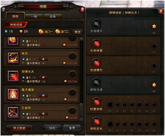 升到40级,愿意砸钱的可以入手一本狂暴,你整个人生都会不同。上古老区狂暴30-40万左右,我们区目前135万左右,新区230-280万(我的狂暴250万买的)。不买狂暴也无所谓,去拍卖行入手一把40级蓝武,技能对的最便宜的就行,随意点满精炼格子带着升45,别回煺,随便就行。这个时候建议使用嗜血牛加点,并且把一般技能栏里的挑衅拖出来,进副本全程开挑衅拉仇恨,49级之前我使用的都是嗜血牛加点。现在的攻略有个误区,说气功牛输出拉嗜血好几条街,其实那是在属性成型以后,根本塬因是嗜血牛的技能伤害机制以固定伤害为主,而气功牛或者别的高输出职业如重枪猴子等等技能的伤害则主要以主属性的百分比为主(攻击或者筋骨的加成作用很明显),所以嗜血牛输出前期给力,非常给力,但后期乏力,类似dota里技能都是固定伤害的法师,气功前期则萎得一逼生存还有问题,妥妥需要farm的后期(lol叫adc)有木有。