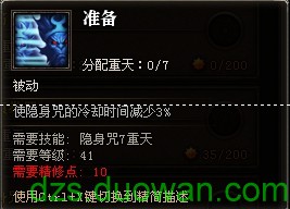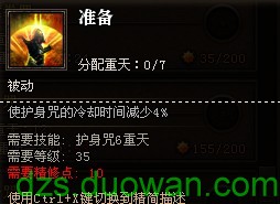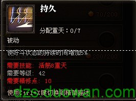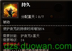 持久。。。怎么说呢,这个技能就没怎么加 除非后期点多 要不然不会多加的 加了的也很少加持久 但是我感觉以后60后点多了 这个技能还是要成为主要的BUFF技能的 而不是单纯的回点! 剪CD 不多说。。。。